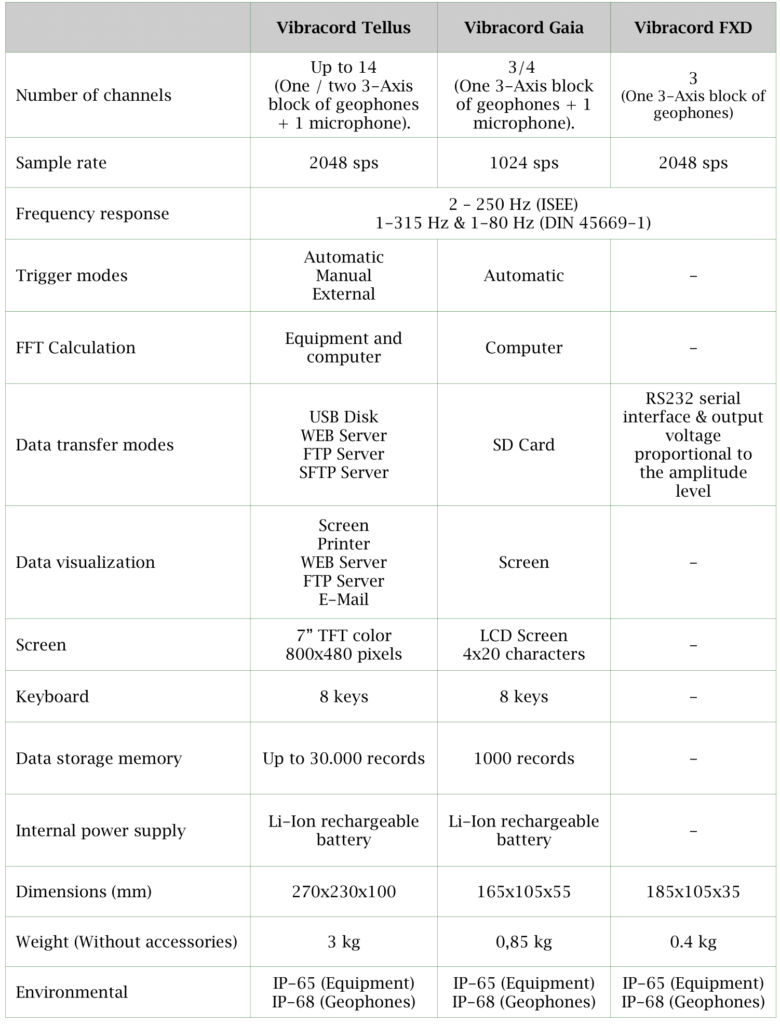 - As 3 fichas BNC têm uma saída de tensão com um sinal de tensão proporcional ao nível de vibração do solo.